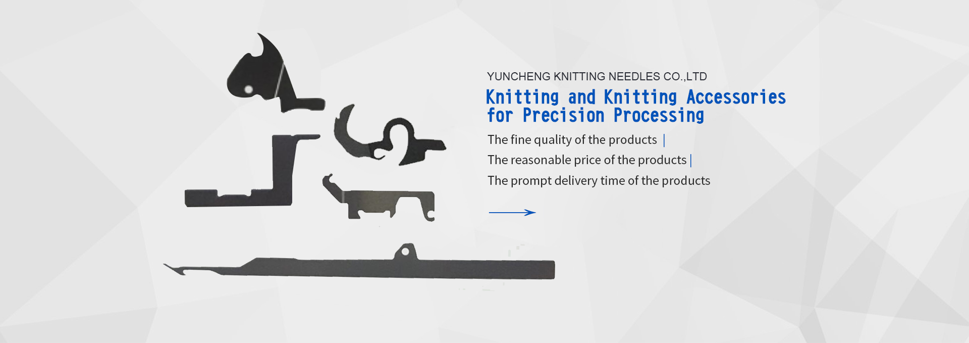 The main products are all kinds of large round knitting machine, flat knitting machine, fur machine, hosiery machine, glove machine and other steel knitting needles and all kinds of auxiliary knitting needles (sinker, guide needle, jacquard, cutting knife).